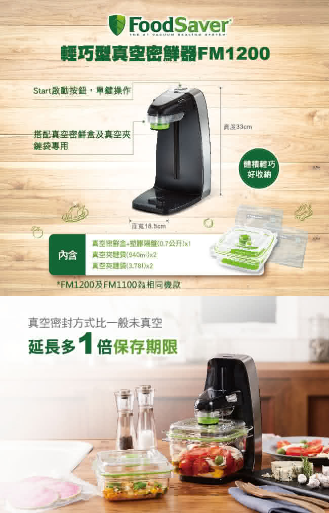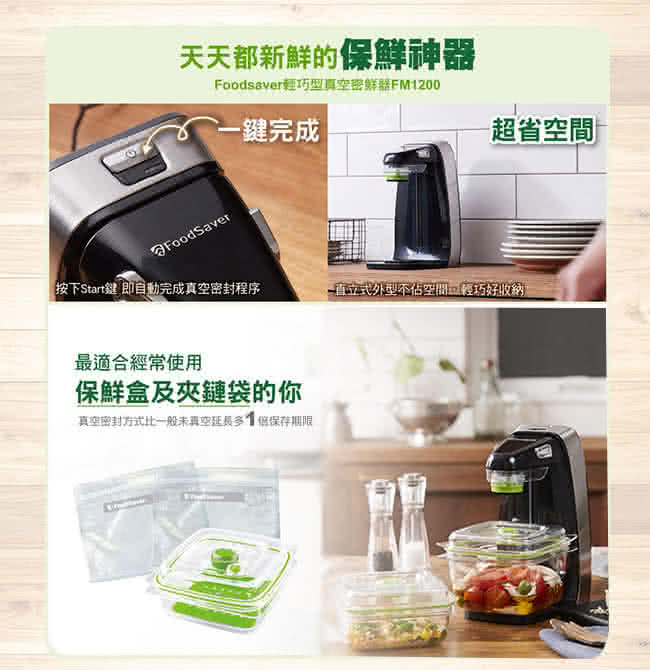 【美國FoodSaver】輕巧型真空密鮮器(FM1200)